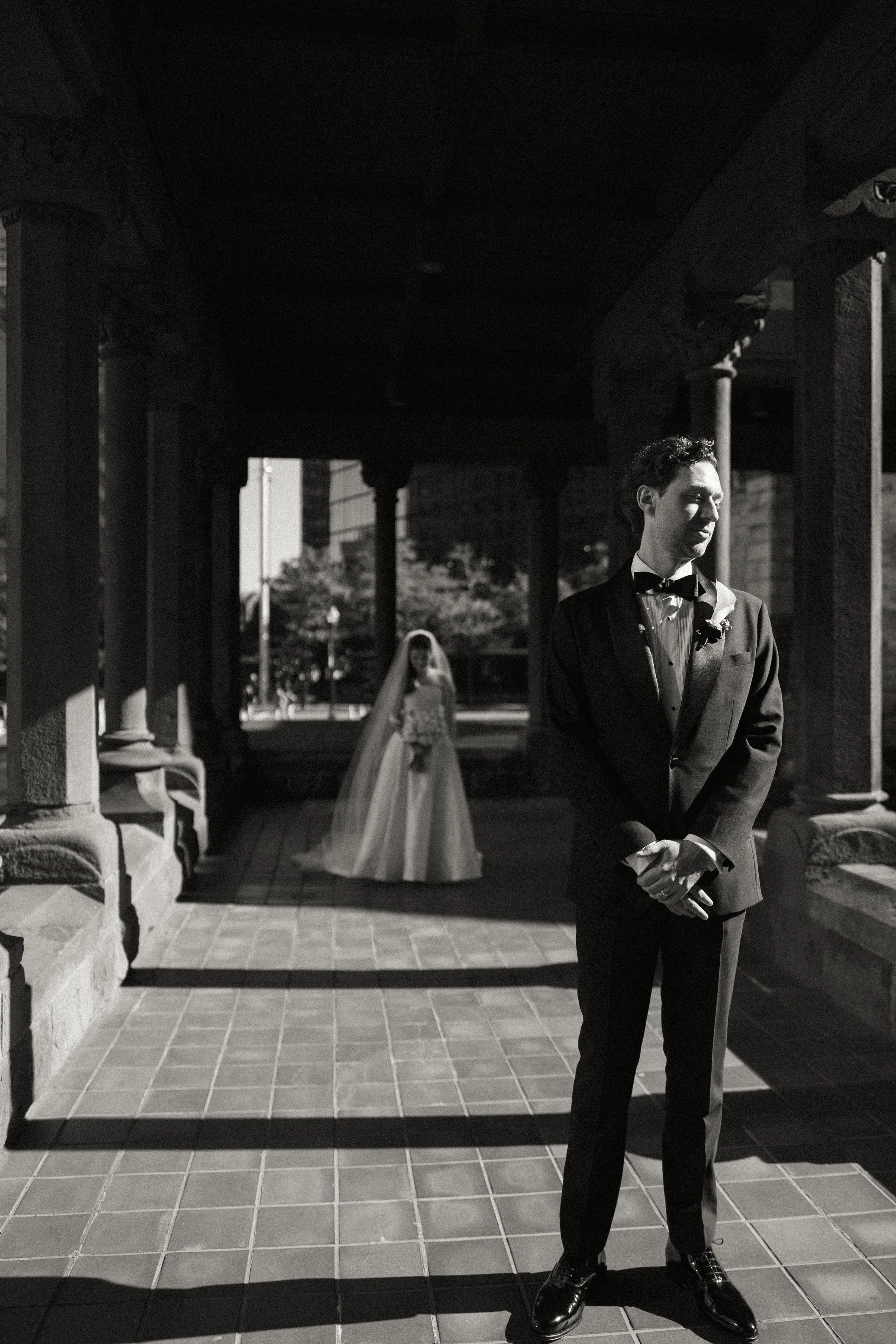 The couple had their first look behind Trinity Church, an iconic Boston landmark. The groom was absolutely captivated seeing his bride for the first time.